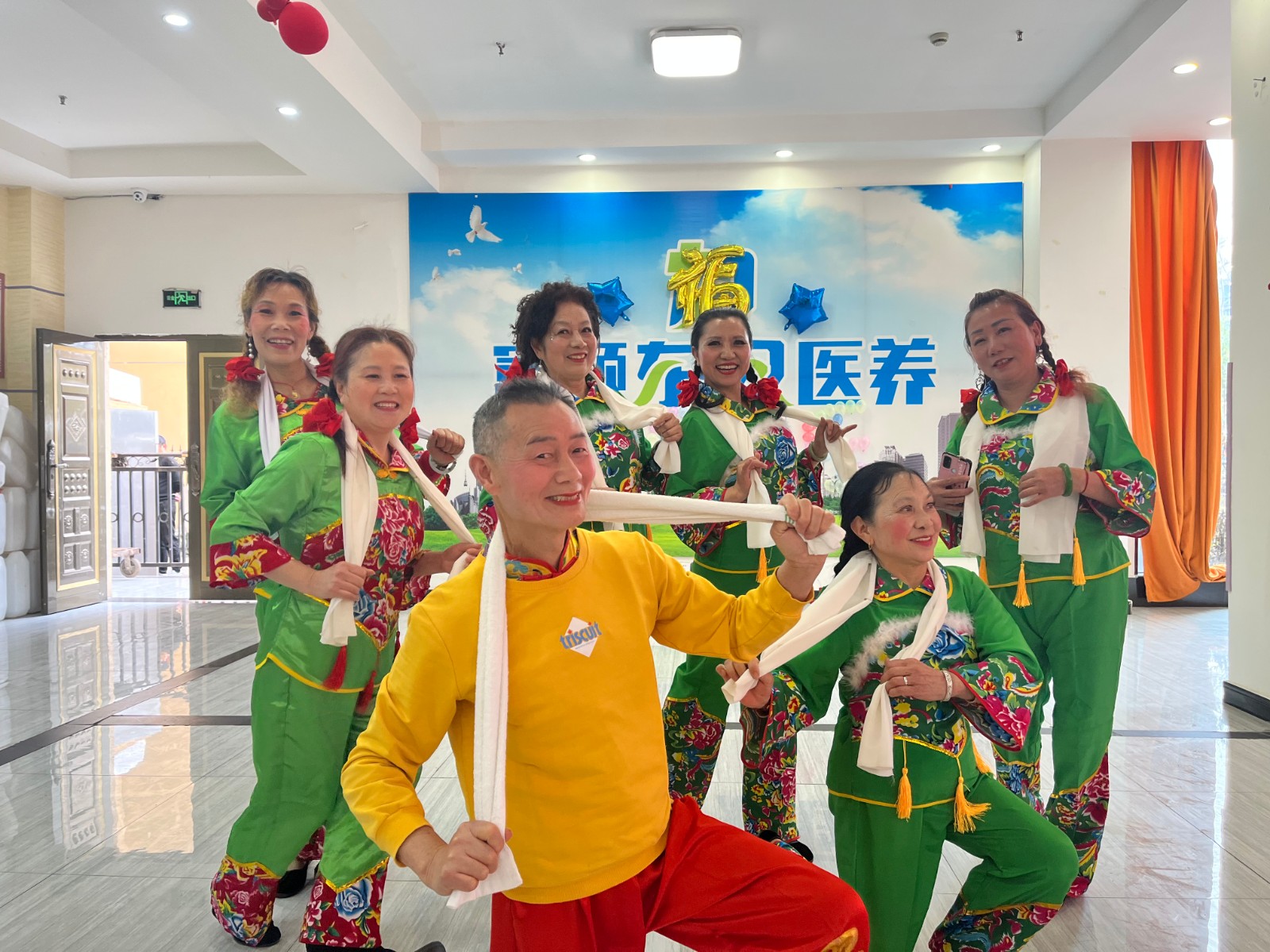 ΪÁË»îÔ¾Æø·Õ£¬¸»Ë³¶«Ë«Ò½ÑøµÄÊÂÇéÈËÔ±ÃÇÌØ±ðÑûÇëÁËÎ赸ÍŶÓÀ´½øÐÐÁ˾«²ÊµÄÑݳö£»Ê¢×°ÑݳöµÄÎ赸ÍŶÓÃÇÔØ¸èÔØÎ裬¸ø×ð³¤ÃÇ´øÀ´ÁËÎÞÊý»¶ÉùЦÓï¡£